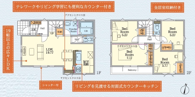 | 間取 | 4LDK (LDK19.7帖、洋室5.2帖、洋室5.2帖、洋室5.7帖、洋室7.1帖) | ||