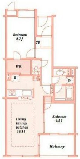 | 間取 | 2LDK (LDK14.1帖、洋室4.8帖、洋室6.2帖) | ||