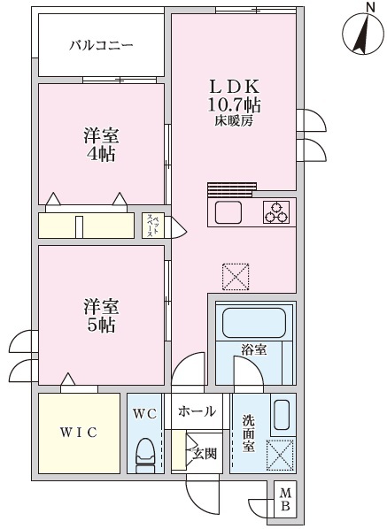 | 間取 | 2LDK (洋室5帖、洋室4帖、LDK10.7帖) | ||