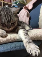 手を伸ばして寝ながら何かを取ろうとしています。 耳はいつも起きています。