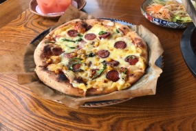 沖縄で人気がある ピザ屋さんです。 絶景を見ながら 美味しいピザを食べました。