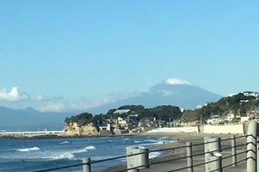 雪の少ない秋の富士山です。七里ヶ浜にて