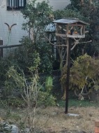 庭の餌台にミカンを刺しておいたら、鳥が食べにきました。