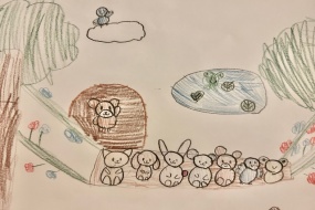 年長になって次は小学生 ここにいる沢山の動物達みたいに クラスで新しいお友達と会えるのが楽しみで 描いたようです!