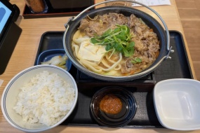 豚骨醤油の牛鍋を美味しくいただきました。