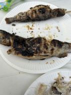 マス釣り体験しました! 塩焼きにしてバクッ! おいしー!!