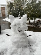 久々に雪がふりました。猫雪だるまを娘がつくりました。