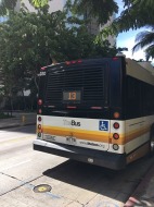 ホノルルの定期バスの後部窓はなぜか鉄格子です。