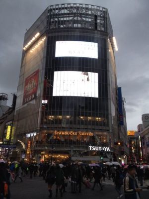 渋谷駅ハチ公前交差点です。 毎日、雨でもすごい人です。
