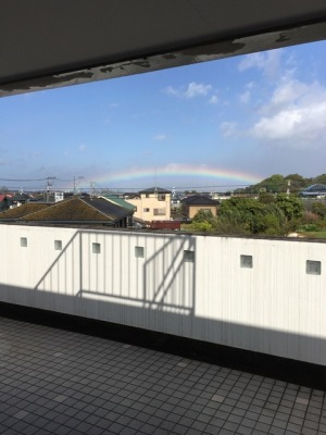 今日は天候が荒れた。 風が強く、現場の見回りを皆で手分けして行いました。 午後になると、打って変わって青空が広がり始めました。 そんな時に見つけた虹。 低いけれど、はっきりと7色確認できて、思わずパチリ。