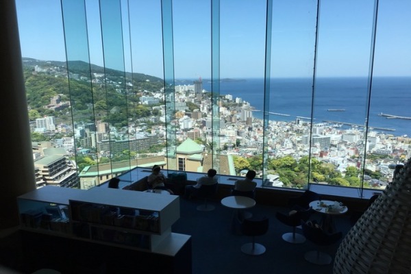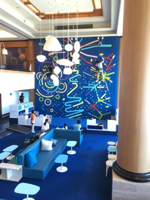 熱海のホテル、リゾナーレ。 ブルーで統一されたエントランスを抜けると開放感たっぷりのこの景色。 子供も大人も楽しめるホテルでしたよ。