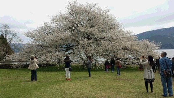箱根の一本桜を見に行って来ました。 とても大きな桜の木でびっくりしました。