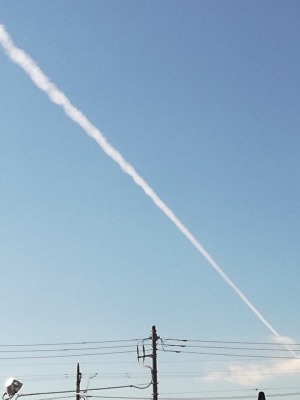 なが~い飛行機雲でした。 写真に収まりきれません(汗)