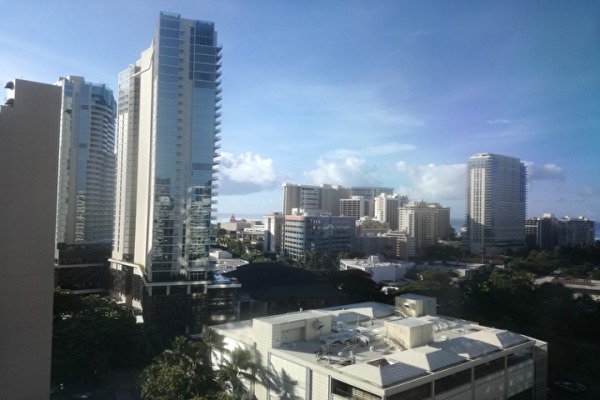 ハワイのホテルからの眺めです。朝の雰囲気がとてもグッドです!