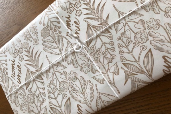 細かく植物が描かれたラッピングぺーパーも素敵です。