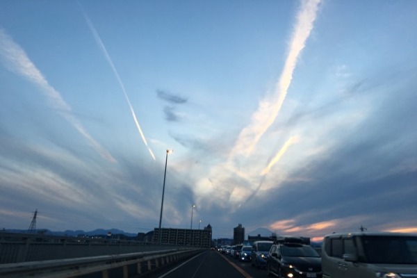 橋の上から見かけた空がなんとも不思議で。 空模様で楽しみました!