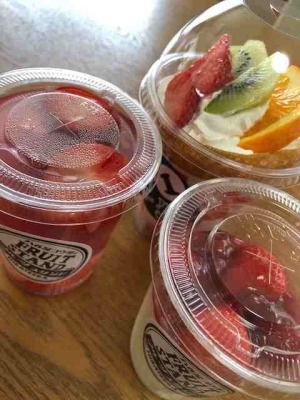 八百屋さんがやっているスイーツです。 ゼリー・杏仁豆腐・クレープを買ってみました。 新鮮な果物を使用しており、おいしかったです。