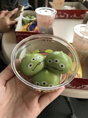 リトルグリーンメンを模したお饅頭です。 少し色合いは気になりますがよくできているなぁと思います。 皆さんも是非ご賞味ください!