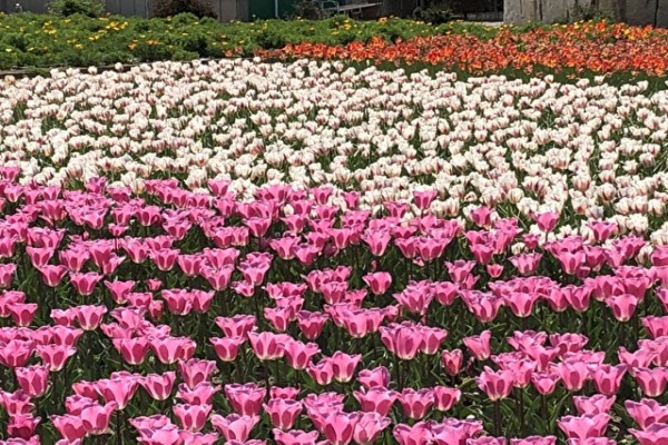 山梨県のチューリップ畑です。 コントラストがとてもきれいです!