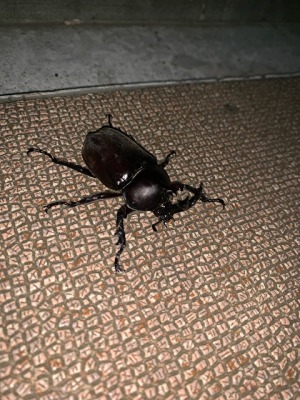 カブトムシを見つけました。 夏ですね!