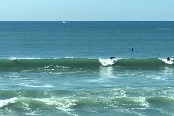 台風の影響でいい波が入っています。七里ヶ浜にて