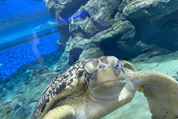 水族館に行った時の写真です 亀さんがにっこりカメラ目線!