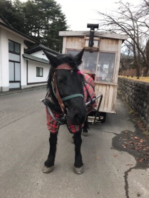 星野リゾートにいたストーブ馬車です。