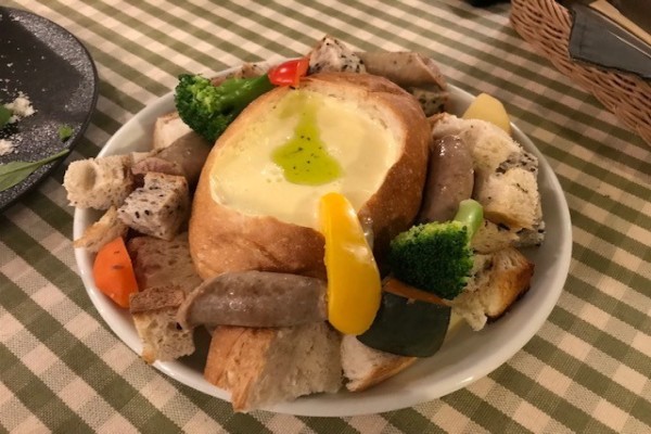 那須のペニーラインというパン屋さんとレストランにいってきました。 有名店で満席でした。 チーズフォンデュを注文しました。