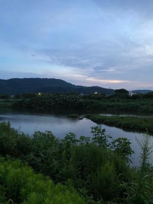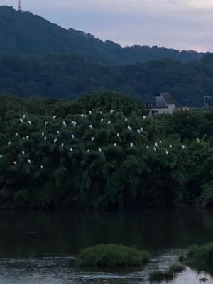 夕方少し歩きました。 日が暮れ始めた頃、川向こうに白い何かが、、 よく見ると、羽休め中の鳥たちでした。 こっちから見ないと分からなかったなぁ。