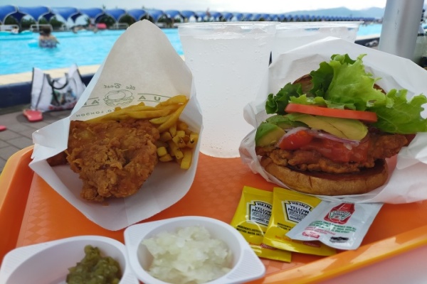 またまた大磯ロングビーチに来ました! レモンサワーとモチコチキンバーガーの組み合わせが最高!!