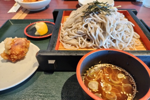 今日はざる蕎麦!唐揚げも一個もらってラッキー!