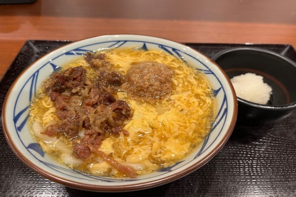 甘辛の肉とあんかけの相性が良く 肉卵あんかけうどんを美味しくいただきました。