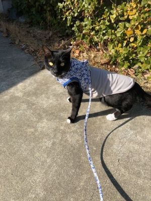 寒くなってきたので、服を着て散歩してます。特に嫌がりもせずに着ています。