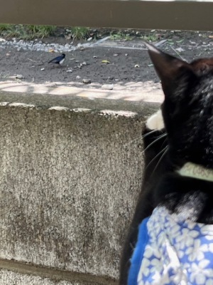 道路の水たまりに、燕が来ています。少し隠れながらずっと見ています。