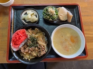 牛丼定食豚汁付きを三門食堂で 美味しくいただきました。