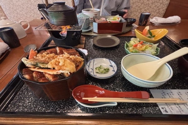 蟹の甲羅でうなぎを食べました。 ふわふわしていて美味しかったです。