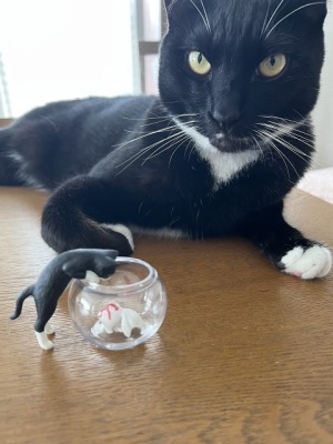 ガチャガチャの猫と金魚。 似たような猫が、出ました。