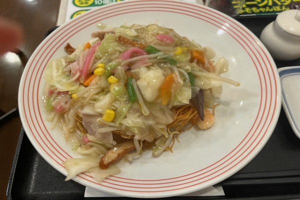 パリパリの麺とたっぷりの野菜餡かけを美味しくいただきました。