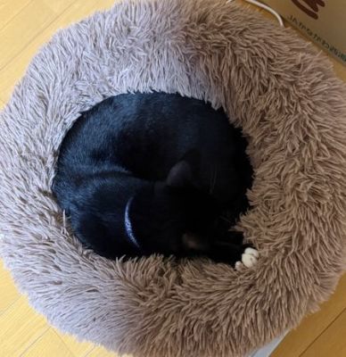 ぴったりはまって、丸くなって寝ています。