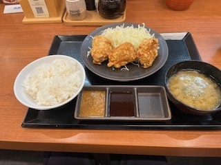 鶏からあげ定食を美味しくいただきました。