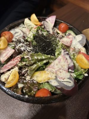 居酒屋うえちゃん そこでのメニュー 地野菜サラダ ボリュームもたっぷりで、美味しくて、満足でした!